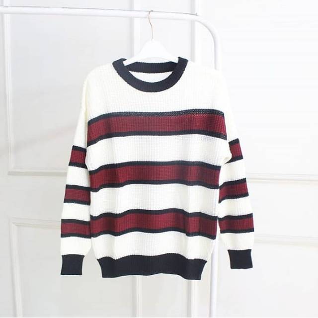 Jual RUCIKA STRIPE baju wanita baju rajut fashion . Sumber Gambar : www.bukalapak.com